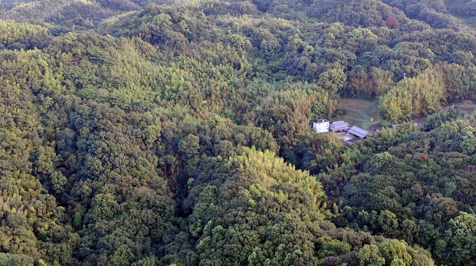 山の中で深呼吸。